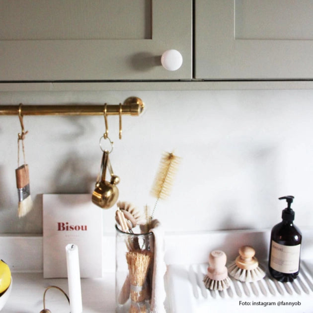 Hakenleisten sind dekorativ und funktional und haben ihren festen Platz in einer Landhausküche. Hängen Sie eine Hakenleiste an die Wand, um Geschirrtücher, Schneidebretter und Küchenutensilien stilvoll und leicht zugänglich aufzubewahren. Sie können auch Kräutertöpfe an die Hakenleiste hängen, was sowohl praktisch als auch dekorativ ist und Leben in die Küche bringt.
