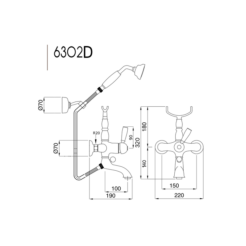 Denver Badewannenarmatur im klassischen Stil und moderner Funktion 150 c/c. Die Armatur kombiniert einen traditionellen Look mit einer modernen One-Touch-Funktion. Diese Armatur hat eine vollverchromte Oberfläche auch bei den Griffen an Armaturen und Brausegriffen.