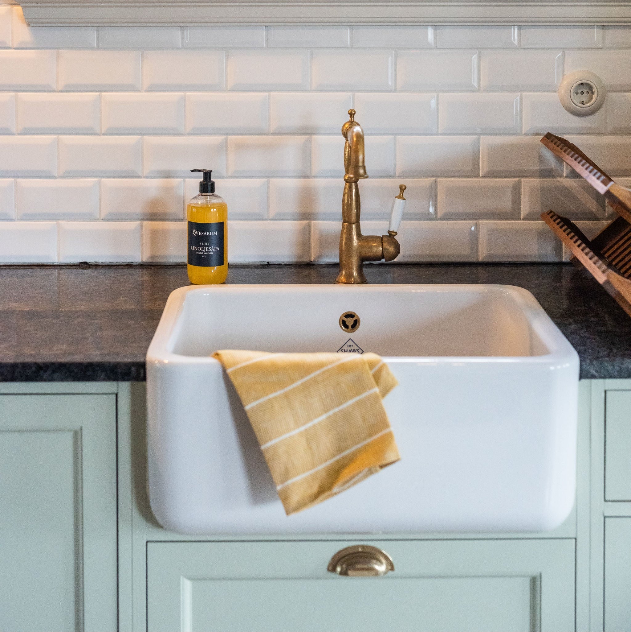 Porslinshon är gjord av materialet Fireclay och är homogent konstruerat. Normalt sanitetsporslin har två tunnare ytor med luft emellan. Den homogena konstruktionen gör att diskhon är mycket stabil och tyngre än vanligt sanitetsporslin. Var därför noggrann med att ha en stabil konstruktion som bär upp själva diskhon.