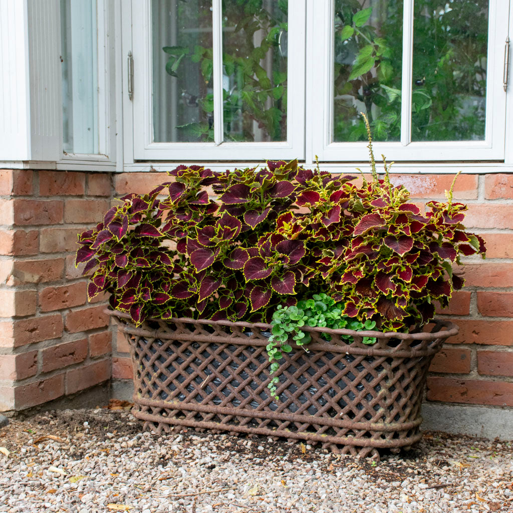 Diese Urne besteht aus unbehandeltem Gusseisen, das im Laufe der Zeit rosten wird. Um Rost an der Urne zu vermeiden, kann sie vollständig mit einem Rostschutzanstrich (z.B. Eisenmönja) und anschließend vollständig mit einer Farbe, die für Metall geeignet ist (z.B. Leinölfarbe), gestrichen werden.