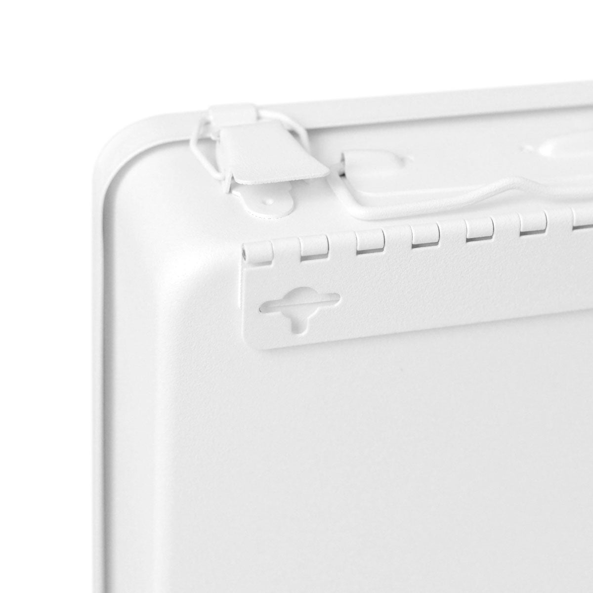 Behalten Sie die Ordnung und den Überblick über Pflaster, Verbände und Medikamente mit unserer soliden Verbandsbox aus pulverbeschichtetem Stahl. Das Erste-Hilfe-Set verfügt über eine klappbare Halterung zur einfachen Montage an der Wand und lässt sich leicht aushängen und kann problemlos mit dem Auto, Boot oder Ferienhaus mitgenommen werden. Lieferung ohne Inhalt.