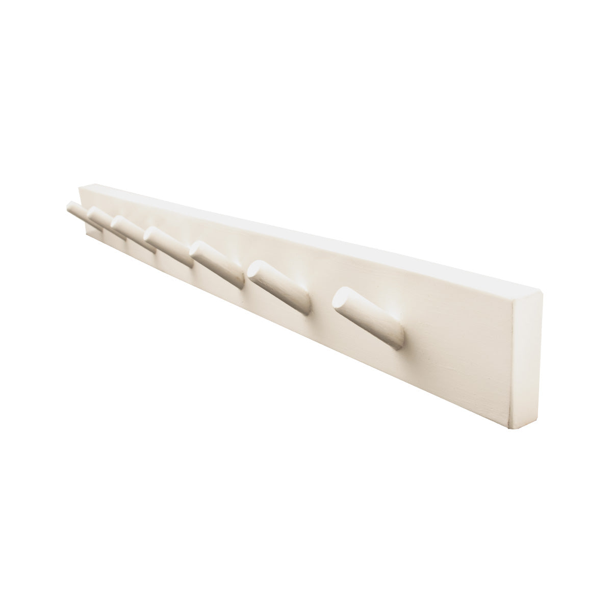 Garderobenleiste Wilma ist eine weiße Garderobenleiste, 64 cm lang mit 7 Haken. Eine ebenso praktische wie dekorative Hakenleiste. Die Garderobenleiste eignet sich zur hängenden Aufbewahrung in Küche, Bad, Flur oder Schlafzimmer. Ein schönes Einrichtungsdetail in der Wohnung und passt genauso gut zum Aufhängen von Geschirrtüchern in der Küche wie Jacken im Flur. Mit einer klassischen Garderobenleiste schaffen Sie ganz einfach Ordnung und Struktur im Haus. Die Garderobenleiste ist in verschiedenen Längen erhältlich, wobei die Anzahl der Haken je nach Länge variiert. Kombinieren Sie nach Bedarf mehrere Garderobenleisten, hängen Sie sie übereinander oder in Reihe für einen praktischen Teiler an der Wand. Die Garderobenleiste ist in verschiedenen Größen und Farben erhältlich. Die Garderobenleiste gehört zu unserem Nachhaltigkeits-Sortiment, das heißt, er wird aus Abfallmaterialien von Fenstern und Türen hergestellt.