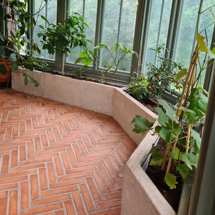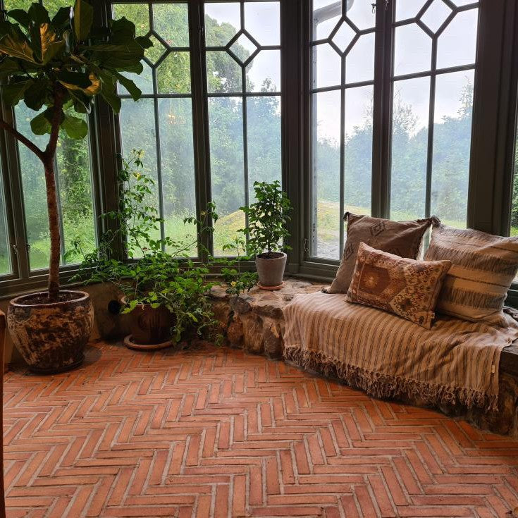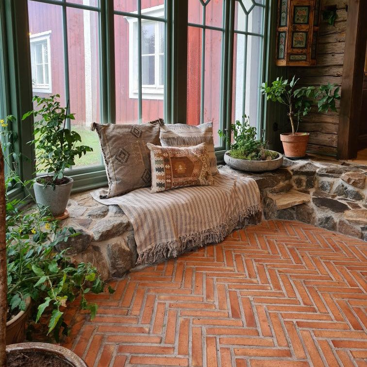 Klassische rote Bodenziegel, die wie Fischgräten verlegt werden kann. Lassen Sie Ihr Zuhause, Ihre Orangerie oder Ihr Gewächshaus von einem schönen Ziegelboden vergolden. Dieser handgefertigte Ziegelboden wird in Spanien nach alter Tradition hergestellt, so wie vor mehr als 100 Jahren Bodenziegel hergestellt wurden. Die Ziegel haben schöne unterschiedliche Farbnuancen und die etwas unregelmäßigen Kanten ergeben einen rustikalen und lebendigen Boden, der schön altert und langlebig ist. Die handgefertigten Ziegel sorgen für einen lebendigen und schönen Ziegelboden, der sich beispielsweise in klassische, rustikale und rustikale Umgebungen in beispielsweise Küchen, Fluren und Orangerien einfügt. Die gröbste Seite des Ziegelsteins wird normalerweise nach unten gelegt. Beachten Sie, dass die Größe des Ziegelsteins leicht variieren kann. Nach der Verlegung empfehlen wir, den Boden mit 1) Bodenöl Cottobello und 2) einem Flüssigwachs, Lucer, zu behandeln. *Für dieses Produkt werden Versandkosten berechnet. Bei der Lagerung der Ziegel bis zur Verlegung müssen die Ziegelsteine trocken und überdacht gelagert werden.