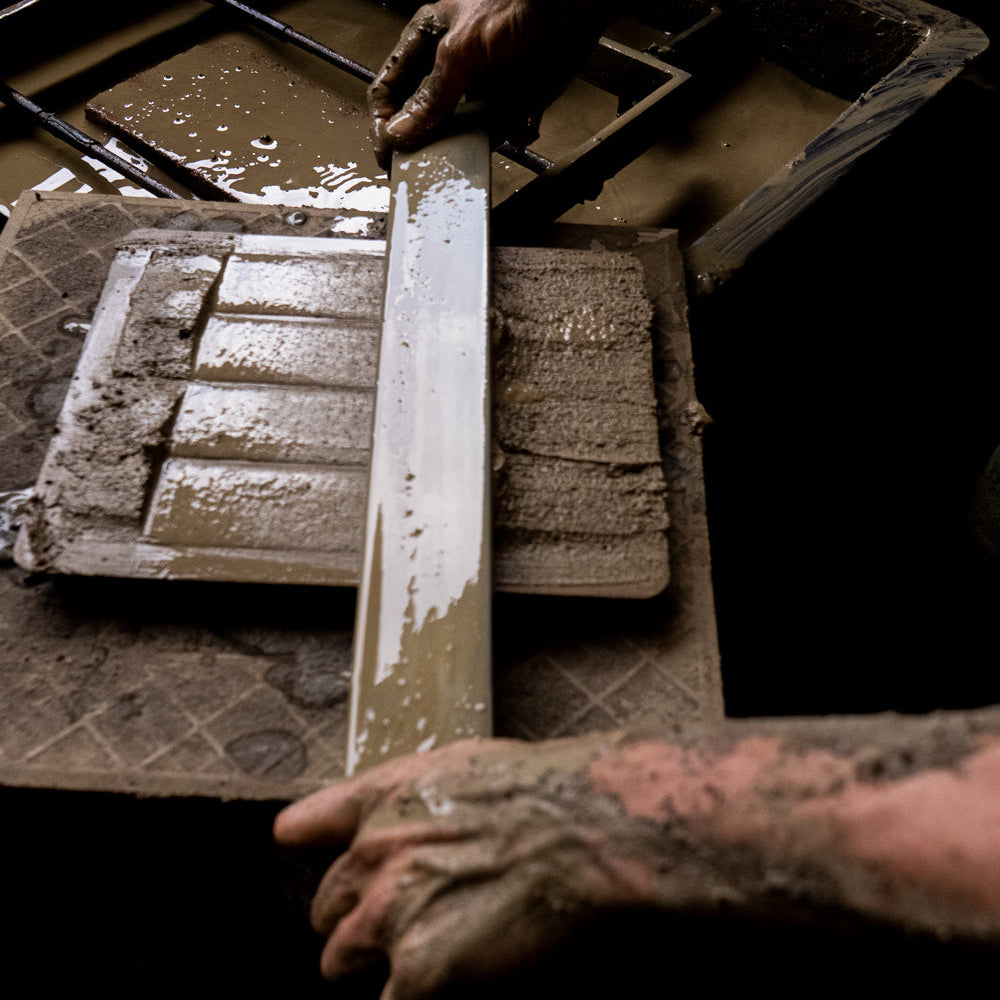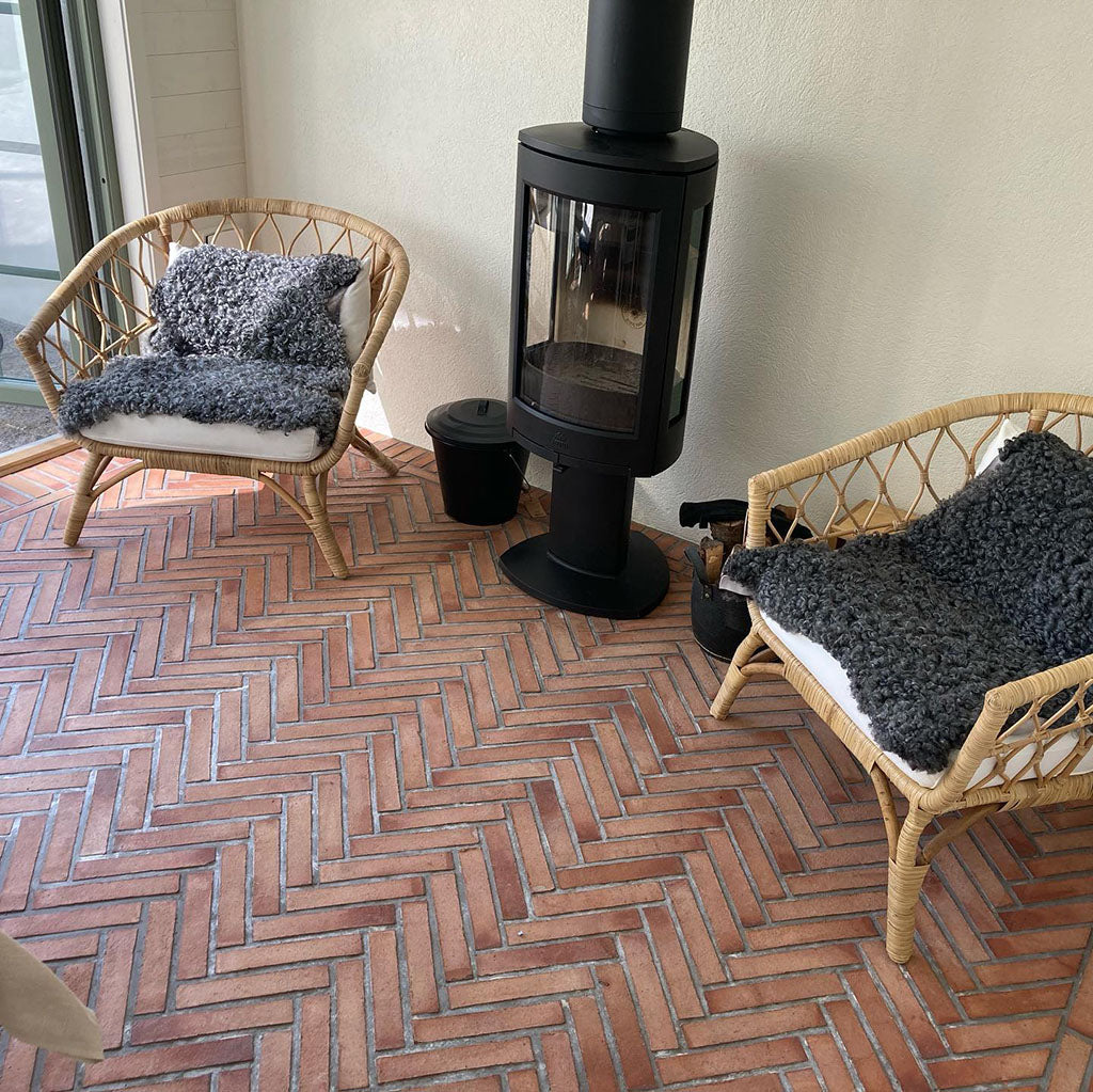 Handgefertigte Bodenziegel Fischgrätenmuster