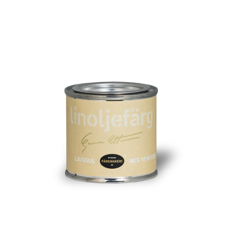 Hergestellt aus schwedischem kaltgepresstem Linoleum und Farbpigmenten. Geeignet zum Streichen im Innen- und Außenbereich. Beachten Sie, dass die Farbe im Bild nicht die genaue Farbe widerspiegelt. In unseren Filialen werden exakte Farbmuster bemalt.