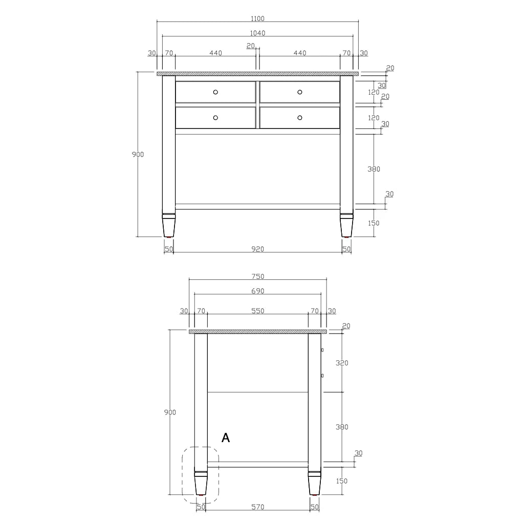 PRODUKTABMESSUNGEN: Bredd (inkl. marmorskiva): 1100 mm Djup: 750 mm Höjd: 900 mm