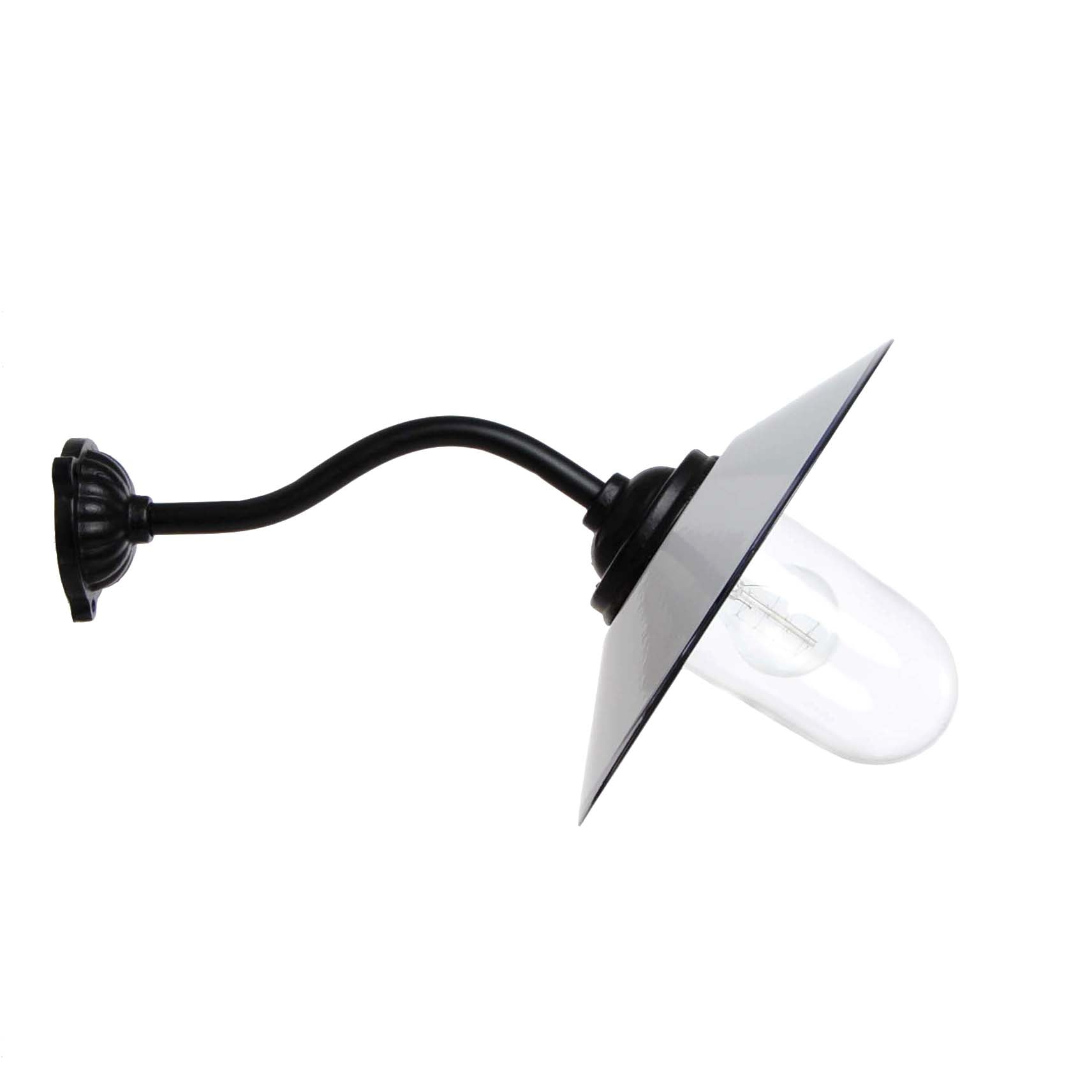 Beleuchten und verschönern Sie die Hausfassade mit dieser gusseisernen Stallleuchte mit geradem, kurzem Arm. Der Arm ist um 35 Grad geneigt, um das Licht nach außen zu verbreiten. Der Lampenschirm besteht aus weiß emailliertem Blech mit dunkelblauem Rand und Klarglas. Der Arm hat eine Neigung von 35 Grad. Sie ist ideal für die Installation im Freien an älteren Häusern der Jahrhundertwende oder an neueren Häusern, bei denen ein altmodischer Stil angestrebt wird und authentische Materialien geschätzt werden. Lassen Sie sich nicht von den Tages- und Jahreszeiten vorschreiben, wie und wann Sie sich an Ihrem Haus und Ihrem Garten erfreuen können. Mit Außenbeleuchtung können Sie die Grenzen verwischen und die Abende verlängern, an denen Sie den Garten, den Wintergarten oder das Gewächshaus genießen. Darüber hinaus ist es schön für Ihre Gäste, Ihr Haus und das Grundstück sehen zu können. Warum präsentieren Sie Ihr schönes Haus also nicht auf diskrete und stilvolle Weise mit einer Stalllampe im klassischen Stil? Sie ist auch als Lichtquelle in der Garage oder am Carport ideal, sodass Sie das Auto leichter parken, be- oder entladen können. Diese Stallleuchte wird nach einem traditionellen Modell hergestellt, das in den frühen 1900er Jahren in Schweden populär wurde. Sie wird auch Stalllampe, Mühlenlampe oder Hofleuchte genannt.