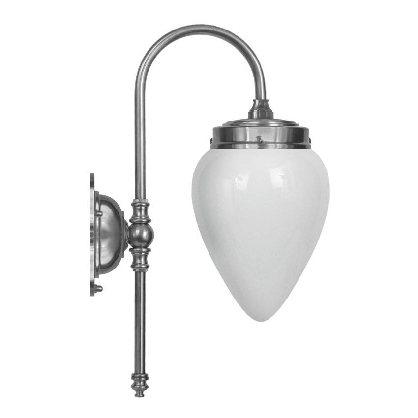 Eine wirklich elegante und klassische Leuchte von Schwedens erstem Lampenhersteller - Karlskrona Lampfabrik. Blomberg in vernickeltem Messing wird aufgrund ihres tropfenförmigen Designs und ihres schlanken Arms geschätzt, der den tropfenförmigen Glasschirm in den Mittelpunkt stellt. Diese elegante Wandlampe ist von der Jahrhundertwende inspiriert und ist dafür gedacht, als Pendelleuchte auf beiden Seiten eines Badezimmerspiegels zu sitzen (siehe Bild), alternativ als Solitär an der Wand. Auch erhältlich in unbehandeltem Messing.
