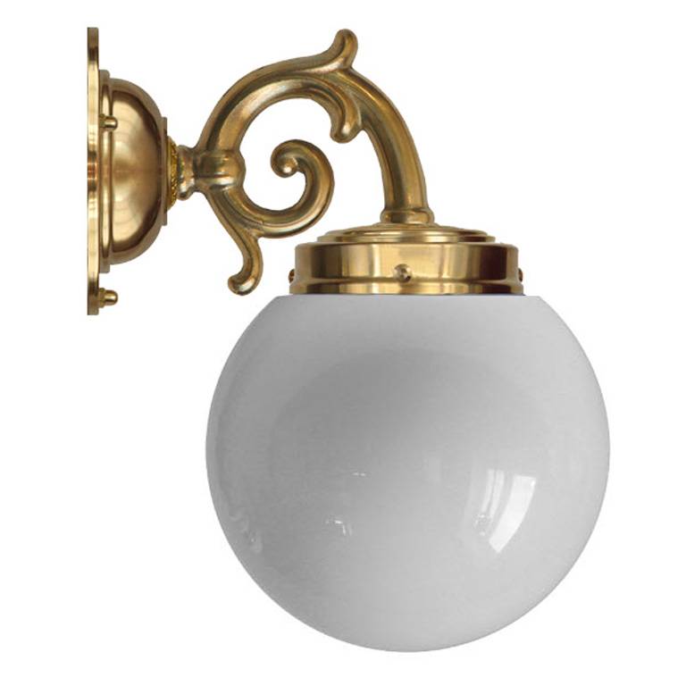 Die Wandleuchte Topelius ist eine schöne und klassische Wandlampe aus Messing von Karlskrona Lampfabrik, bei der das gegossene Messing dominiert. Der gegossene Arm passt sehr gut zu den Löwenpfoten des gusseisernen Badewannen. Rahmen aus Messing und runde Kuppel aus weißem Opalglas. Trotz ihres dekorierten Designs wirkt Topelius schlicht und geschmackvoll, was sie zu einer Badezimmerlampe macht, die sich leicht mit anderen Einrichtungsgegenständen kombinieren lässt.