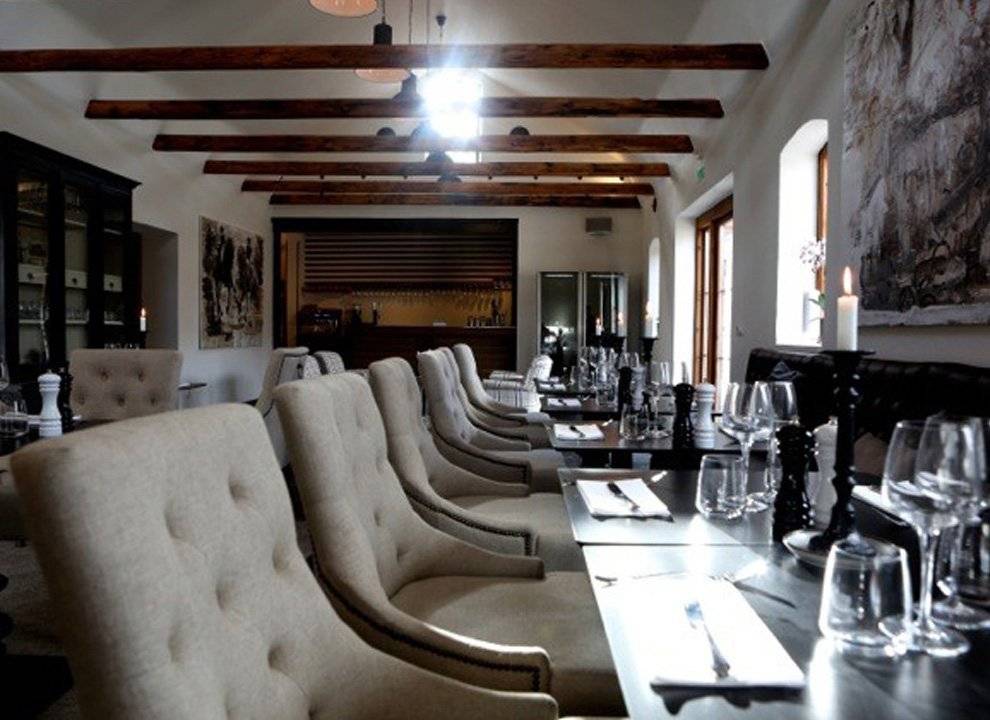 Qvesarum hat auch einen Teil der Inneneinrichtung mitgestaltet. An einer Wand steht ein großer Schrank mit Glastüren, der als Avec-Schrank dienen wird. An den Wänden befinden sich gusseiserne Lüftungsschlitze und auf den Tischen stehen rustikale schmiedeeiserne Kerzenständer.