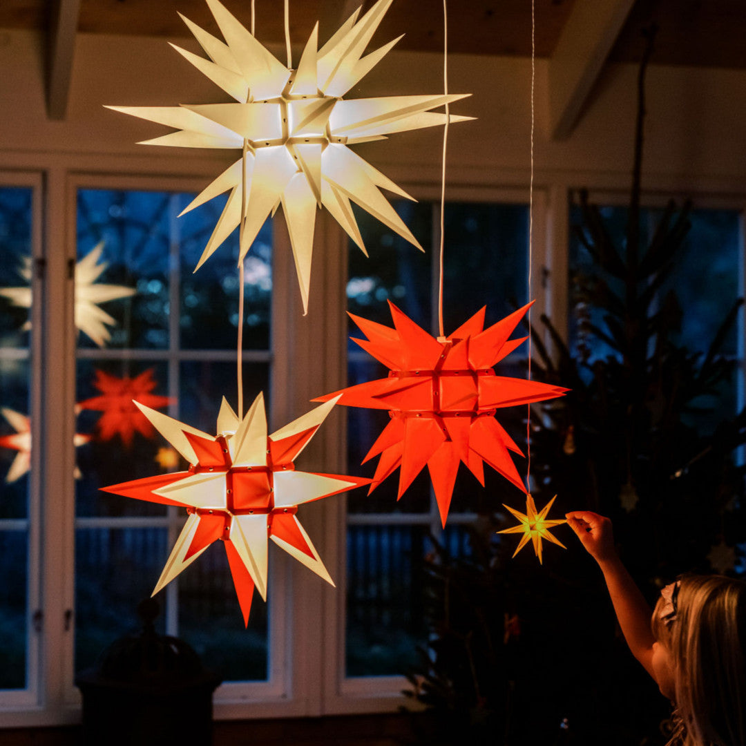 Julstjärnornas julstjärna från Herrnhuter är den tredimensionella stjärnan som är lika fin från år till år. Finns i flera storlekar och för både inomhus- och utomhusbruk.