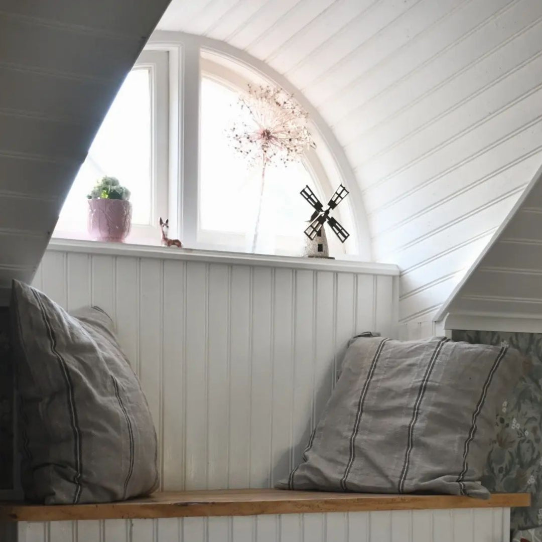 Kompletta ditt halvmånefönster med ett runt fönster som ger karaktär.